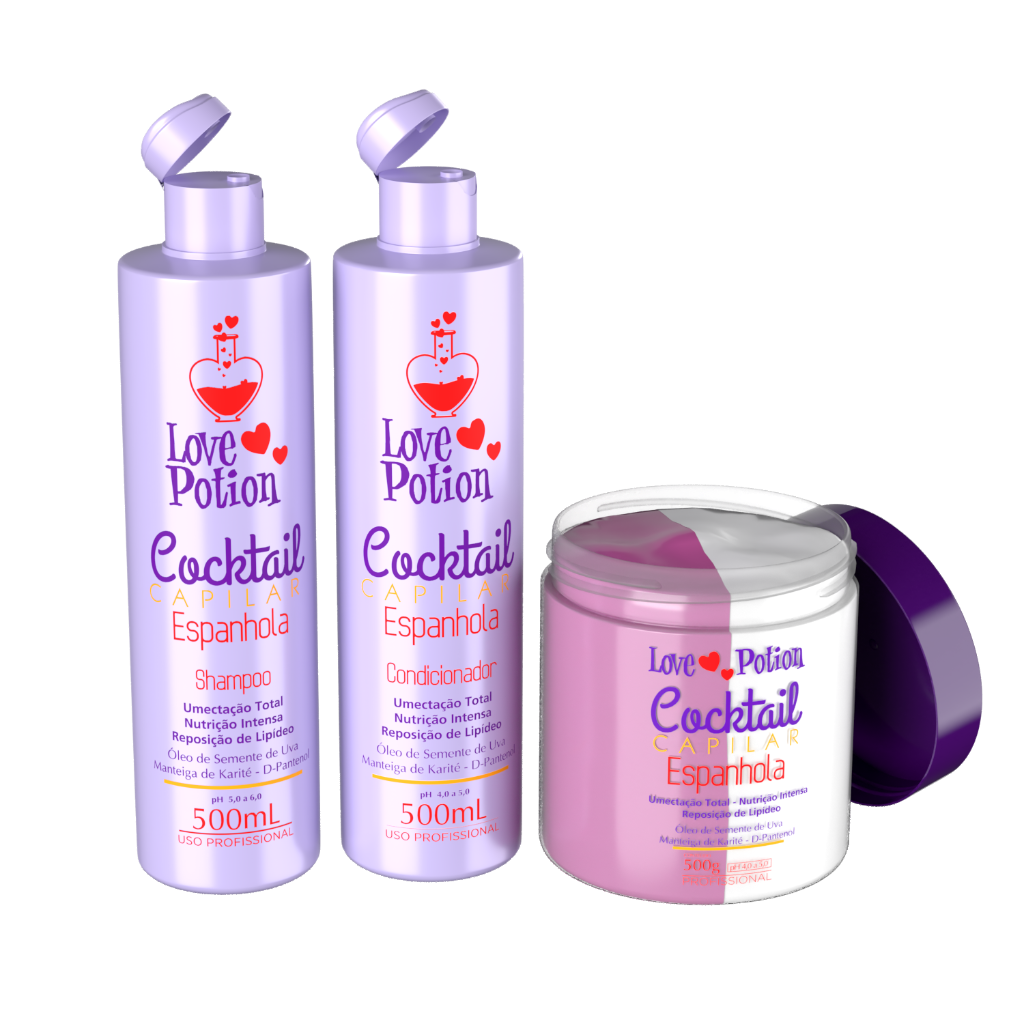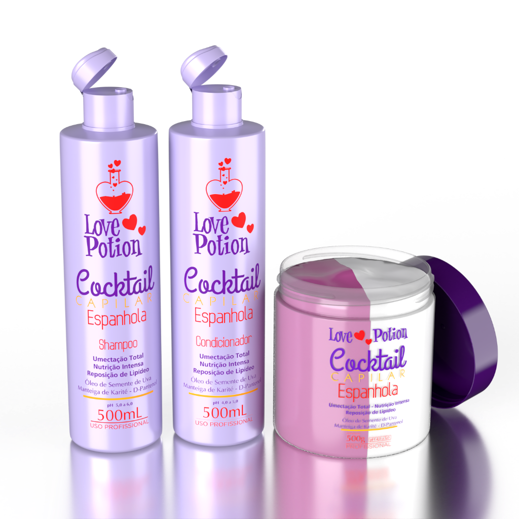 Kit Love Potion - Cocktail Capilar Española - Champú, Acondicionador y Máscara 500ml