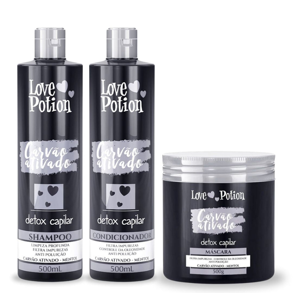 Kit Love Potion - Carvão Ativado Detox Capilar - Shampoo, Condicionador e Máscara 500ml