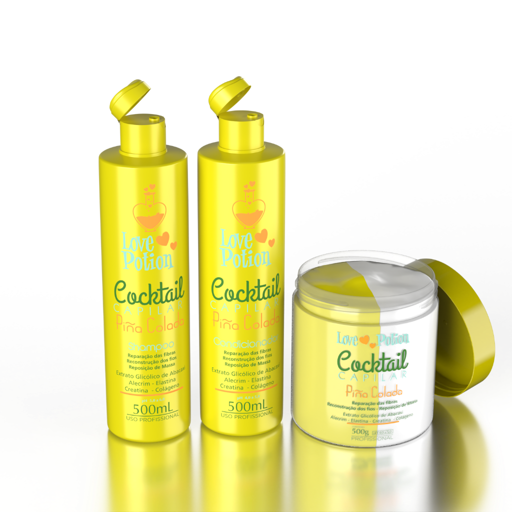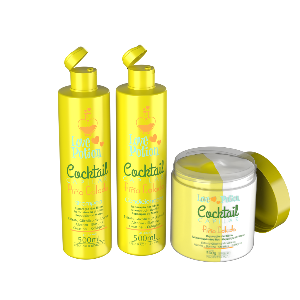 Kit Love Potion - Cocktail Capilar Piña Colada - Shampoo, Condicionador e Máscara 500ml