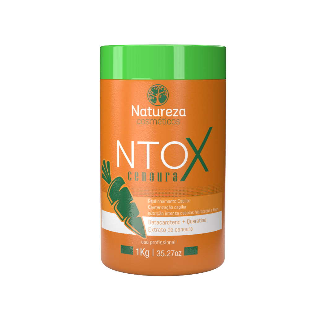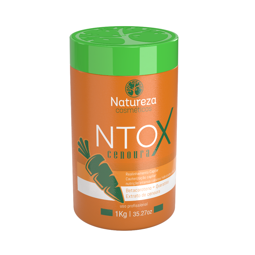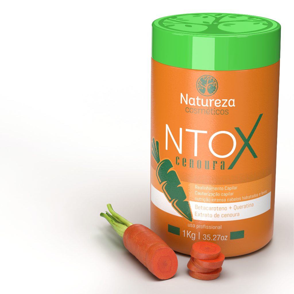 A Natureza Cosméticos traz ao mercado o melhor em tratamentos redutores de volume. Nossa missão é desenvolver produtos naturais que fortaleçam e revitalizem os cabelos, garantindo fios saudáveis e bonitos. Através de intensa pesquisa e desenvolvimento em laboratórios de última geração, criamos o Ntox de Cenoura, uma inovação que combina realinhamento, cauterização e redução de volume, proporcionando cabelos mais hidratados, macios e leves. A cenoura é rica em betacaroteno e vitamina A, que estimulam o crescimento saudável dos fios e atuam como poderosos antioxidantes. Além disso, as vitaminas B, C e K promovem um tratamento profundo para cabelos danificados.