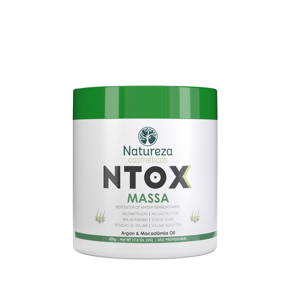 Ntox Massa, da Natureza Cosméticos, é um revitalizador capilar para cabelos danificados que reconstrói as áreas fragilizadas enquanto nutre profundamente os fios, ajudando a controlar e reduzir o volume. Para cabelos macios, hidratados, ultrabrilhantes e com movimento.