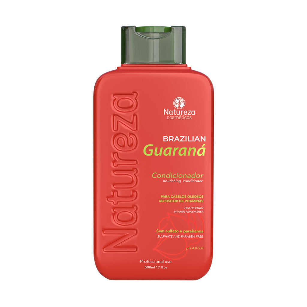 O Condicionador de Guaraná Brasileiro da Natureza Cosméticos contém cafeína, minerais, ferro, antioxidantes e vitaminas A e B1 que regulam a oleosidade do couro cabeludo. Estimula o crescimento, fortalece os fios, controla a produção de sebo e previne a caspa, garantindo cabelos saudáveis, sedosos e com ótima aparência.