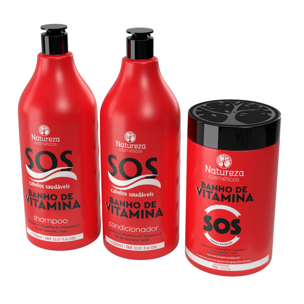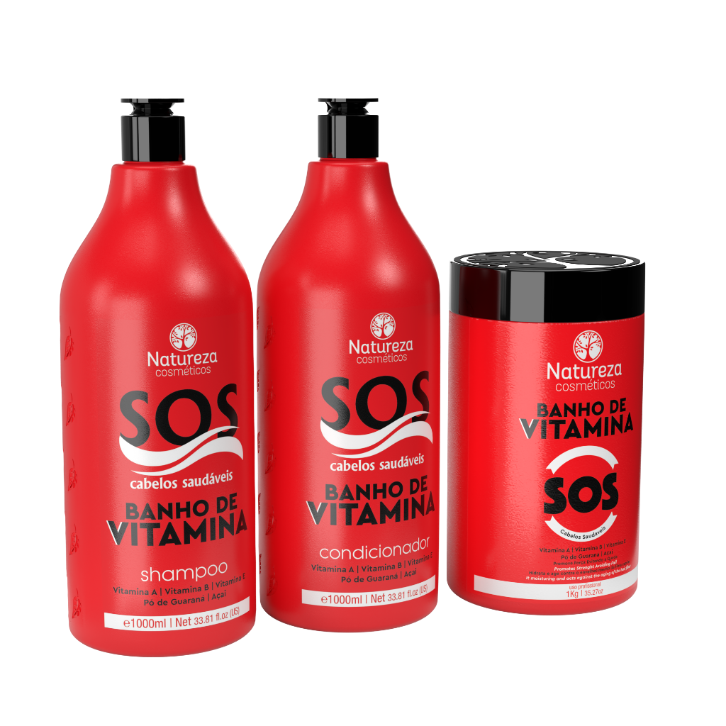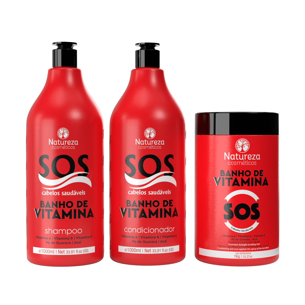 Kit Natureza Cosméticos - Banho de Vitamina SOS - Shampoo, Condicionador e Máscara 1L